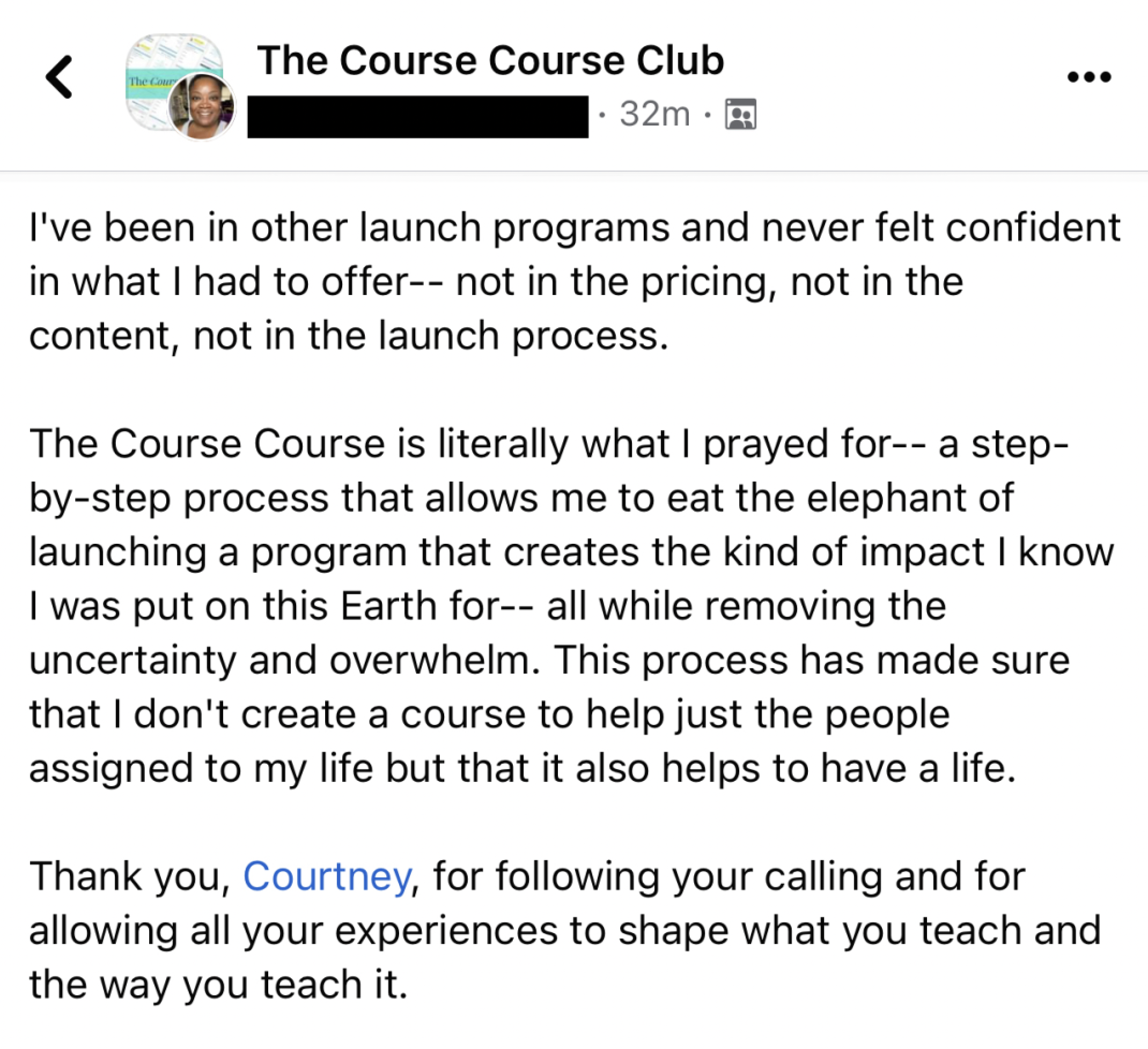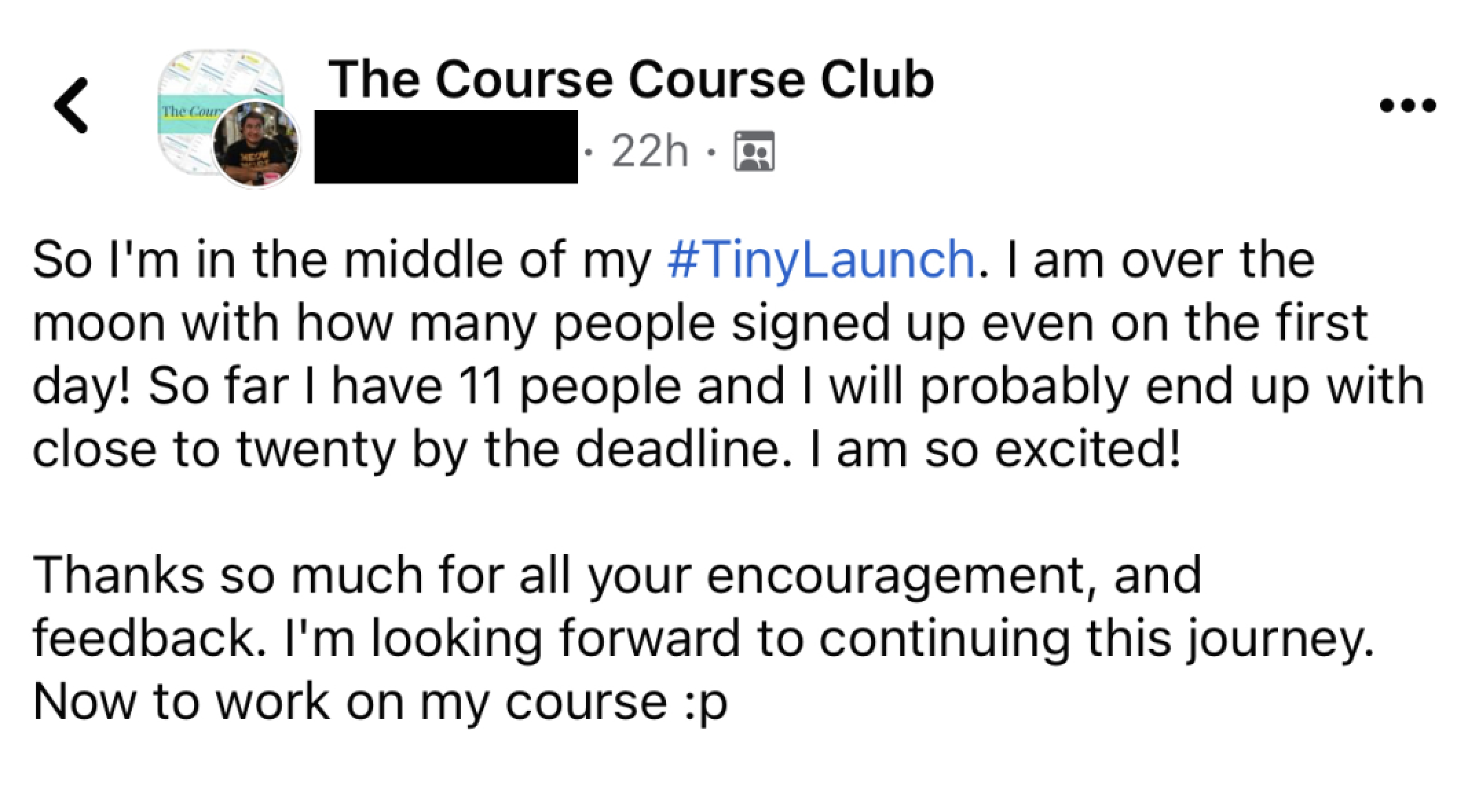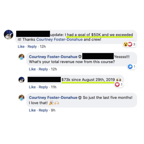 A private students’ only group where you can give feedback, get encouragement, and connect with fellow course creators
