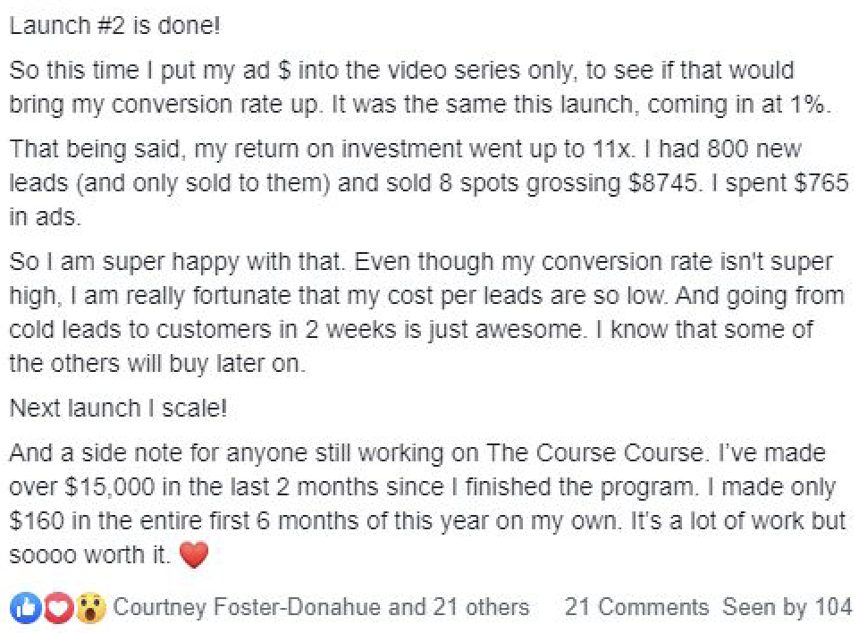 ^ what you could be saying just three weeks from now when you’ve implemented what you’ll learn inside The Course Course…