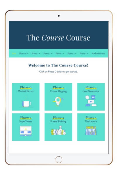 Enter: Phase 4. Inside this part of The Course Course, we'll walk you through the easy-peasy tech tutorials you need to create all of your launch assets as well as your course content and put together your high-converting sales funnel.