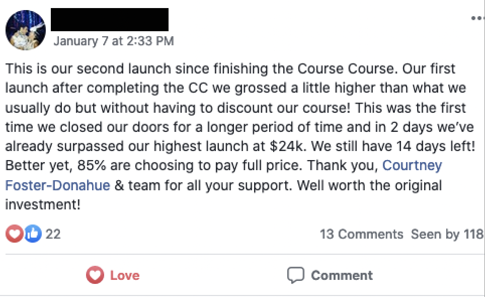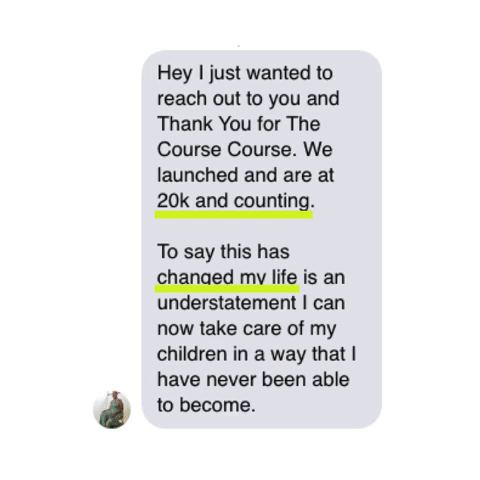 Reach back through the space-time continuum to give yourself a pat on the back, because you joined The Course Course just three weeks earlier and it was the best business decision you ever made! 🎉🎉🎉