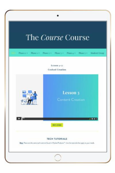 Quite the contrary, Pocket Products® is just one of many marketing strategies you could eventually use to promote your course whereas The Course Course is a complete program covering everything from instructional design to messaging, marketing, sales, student experiences, and beyond.
