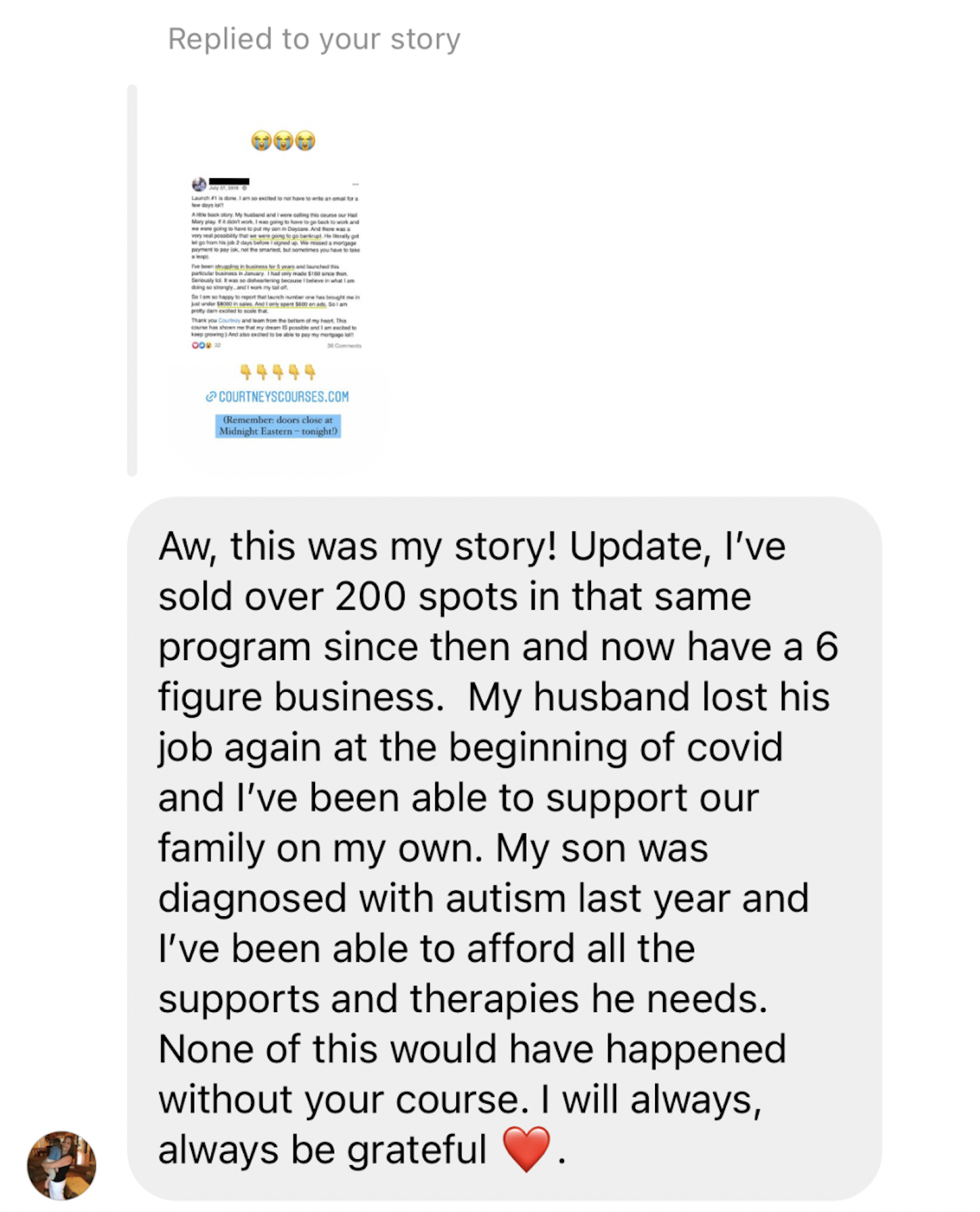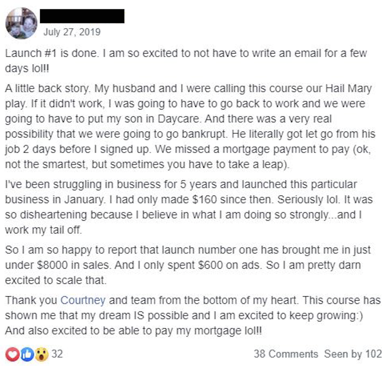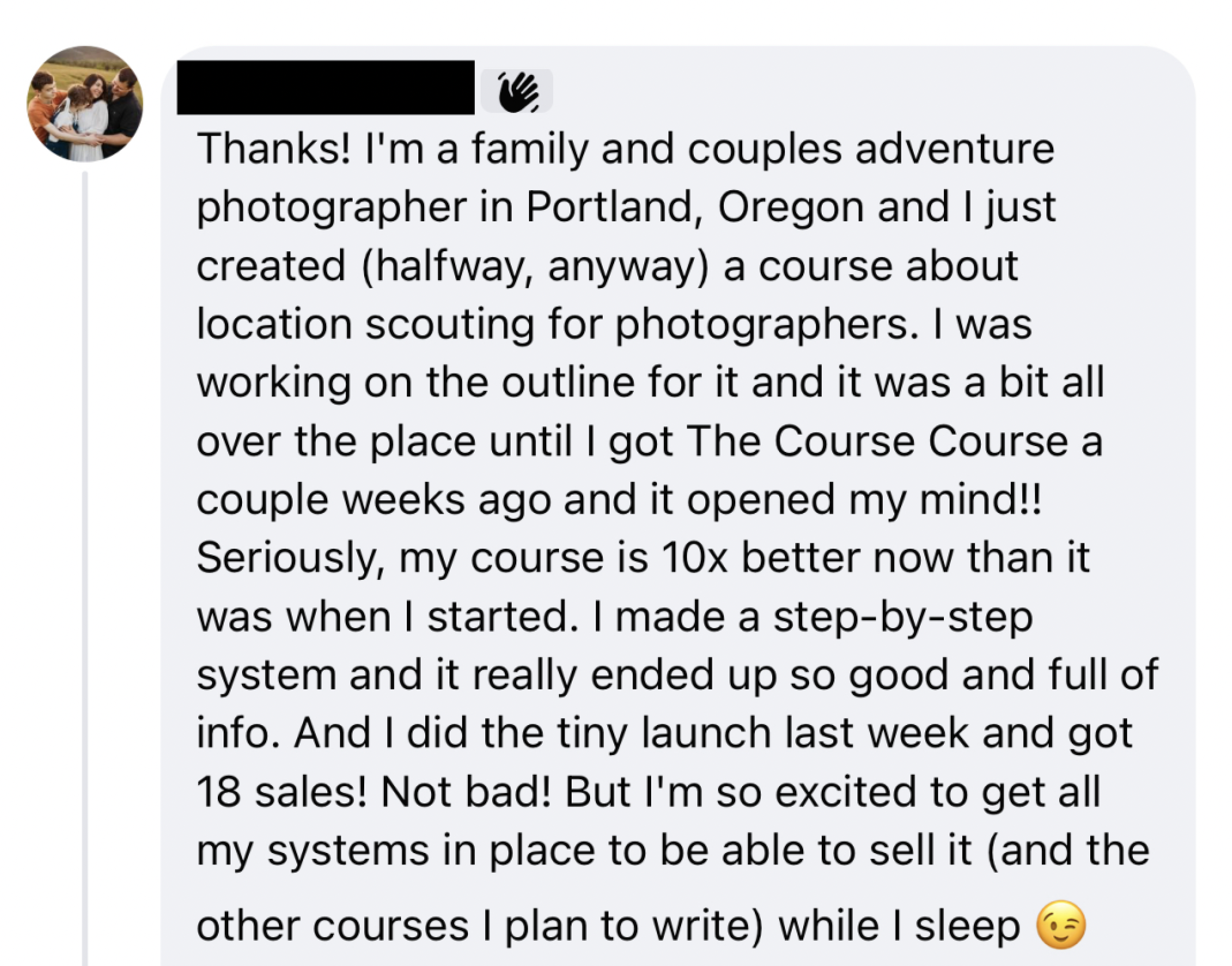 (Sharing to show what's possible! While we can't make guarantees for our own students' success, the process in the video below is what I walk through in The course course.)