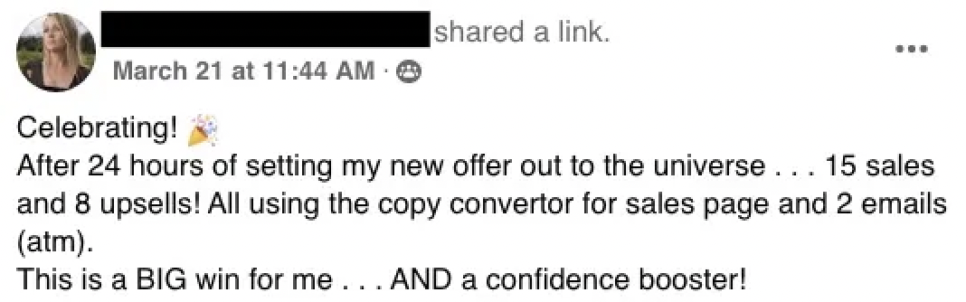 Inside, you'll receive support from me as well as our team, answering questions daily, giving feedback, doing sales page and content audits, even helping with your copy and marketing.